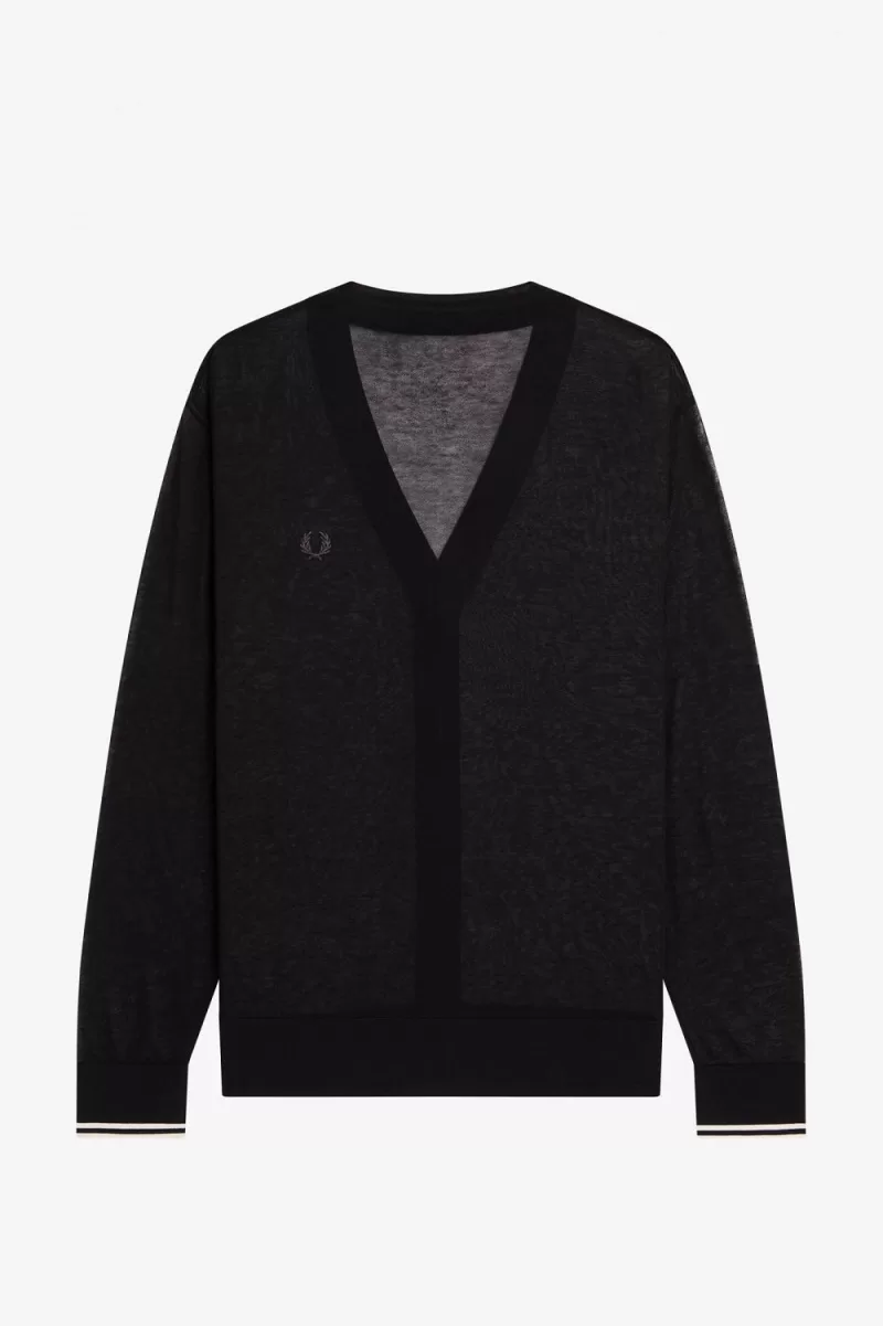 Fred Perry Sheer V-Neck Women’s Cardigan Black | FHVWS7913