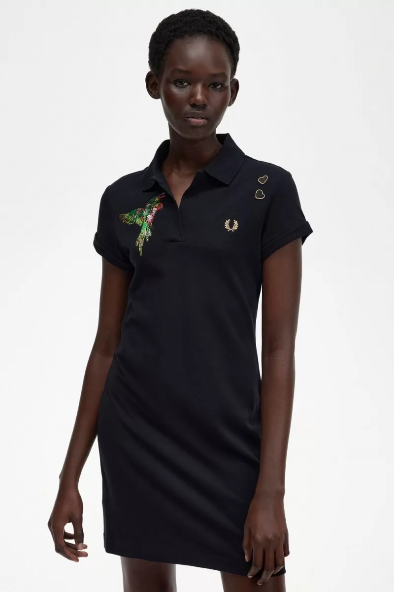 Fred Perry Embroidered Piqué Women’s Dress Black | SJZMY1659
