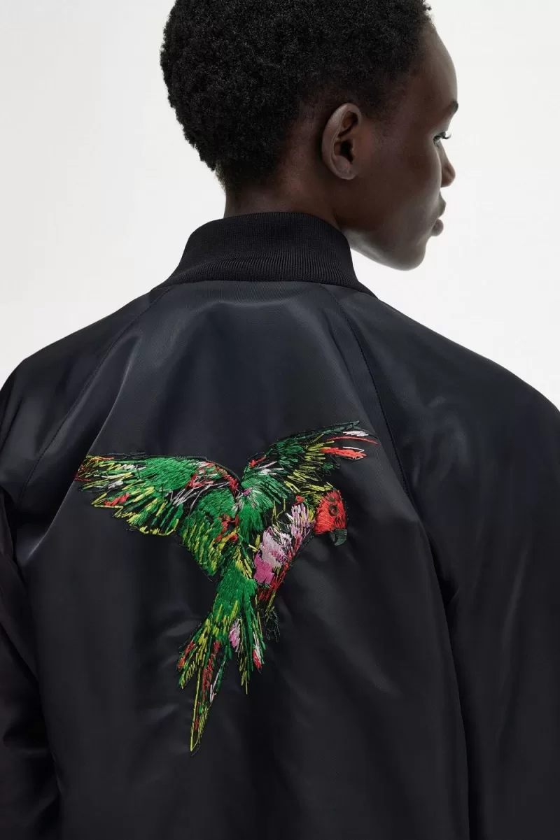 Fred Perry Embroidered Bomber Women’s Jackets Black | EFUWG6831