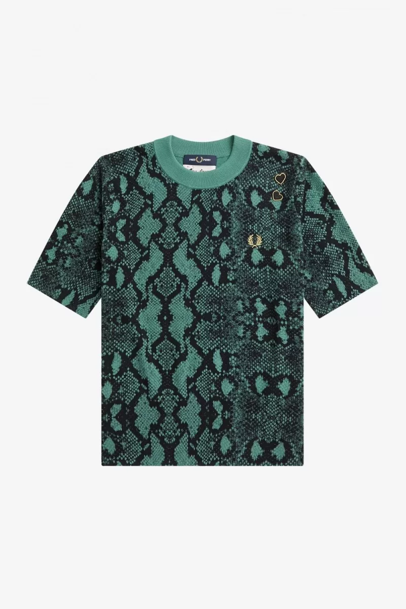 Fred Perry Snake Print Women’s Jumper Deep Mint | DWUCG1582