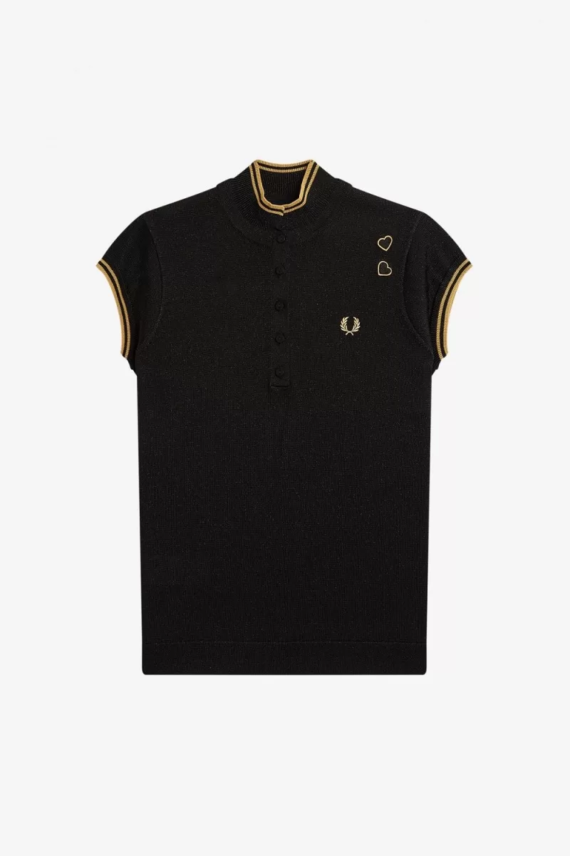 1 review for Fred Perry Metallic Knitted Women’s Polo Shirt Black | LNBRH2768