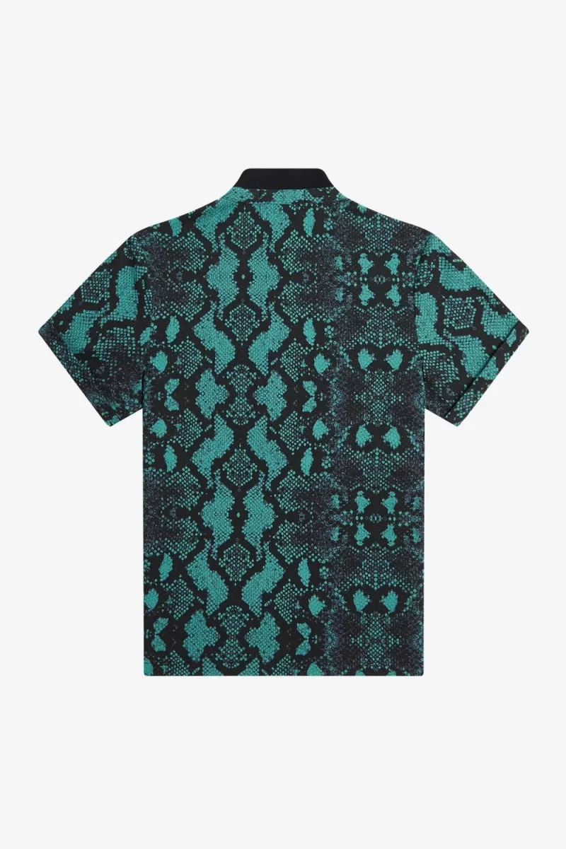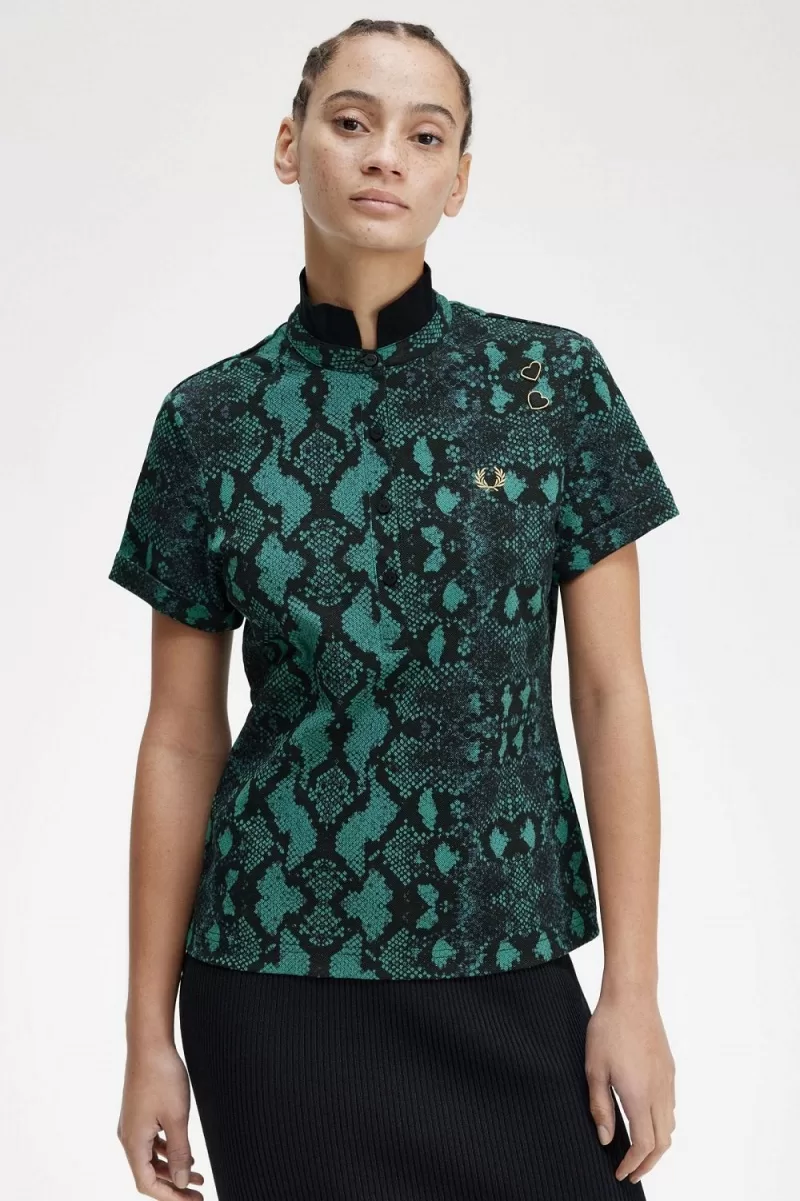 Fred Perry Snake Print Women’s Polo Shirt Deep Mint | QXRLK4790