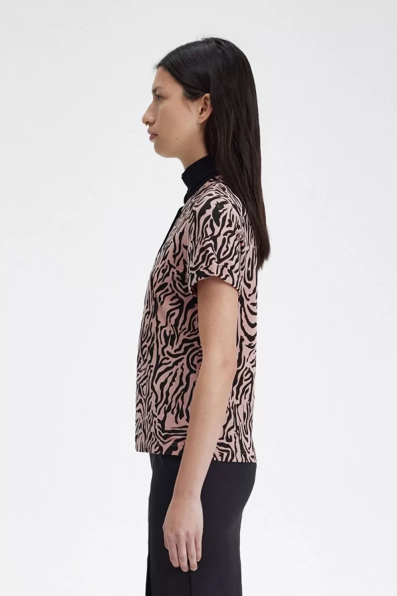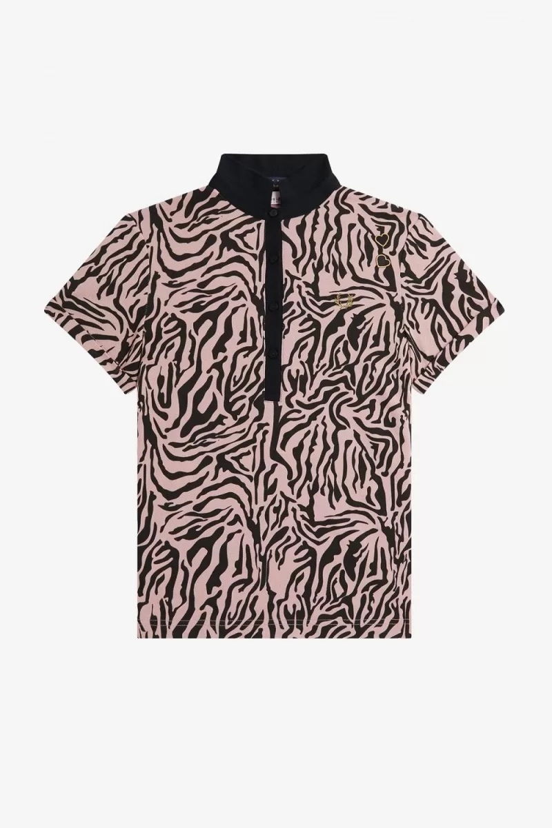 An unapologetically Amy take on the classic cotton polo shirt, with a fitted waist and bold animal print.