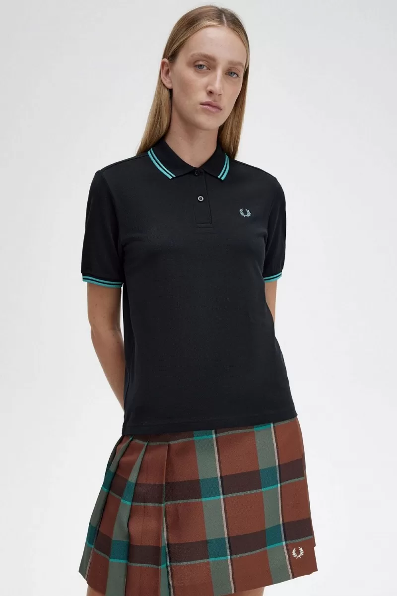 Fred Perry G3600 Women’s Shirt Black Deep Mint Deep Mint | LETRY3750