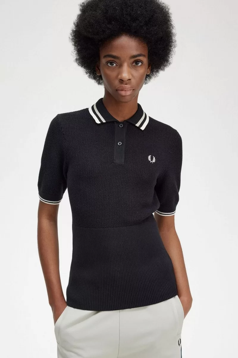 Fred Perry Open-Knitted Women’s Shirt Black | JNCRH0821