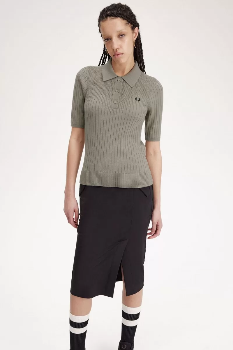 Home Fred Perry Women Fred Perry Women Clothing Fred Perry Women Clothing Shirt Fred Perry Pointelle Detail Knitted Women’s Shirt Warm Grey | NYRAM0125