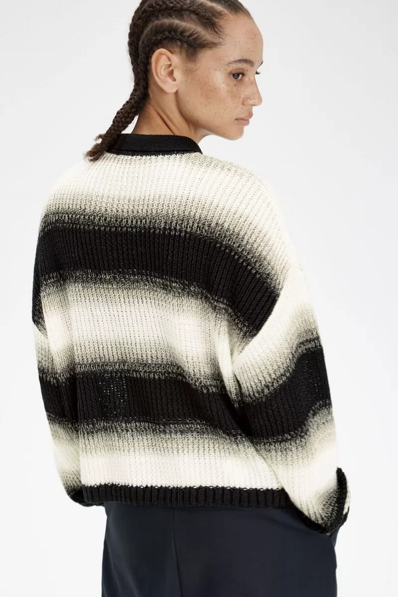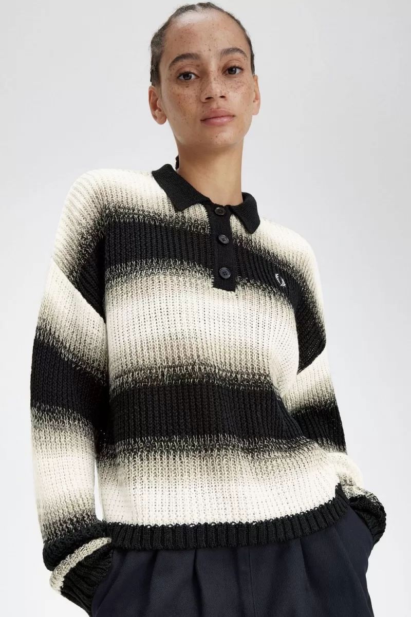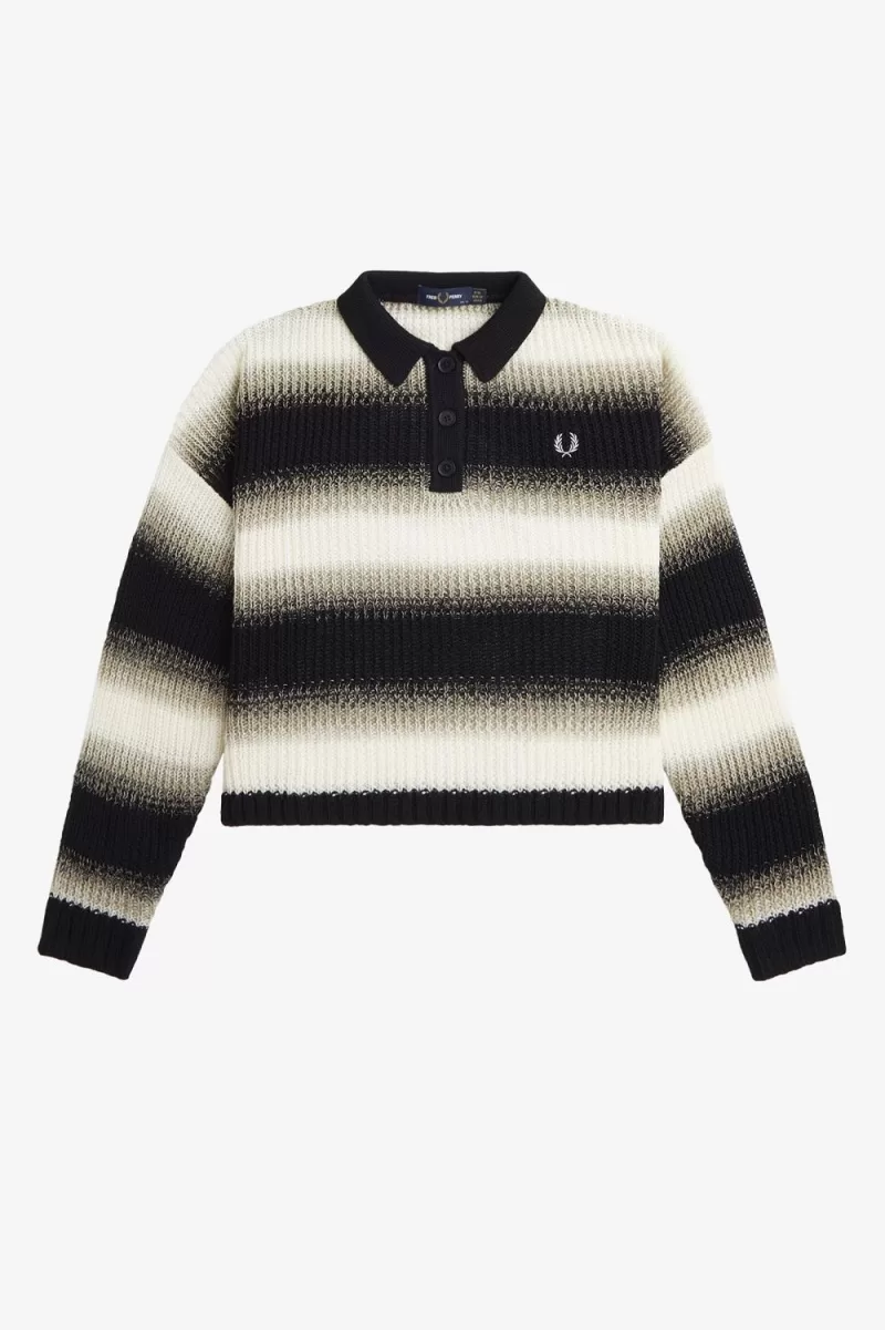 Our open knit shirt with gradient stripe detail and a contrast button placket.