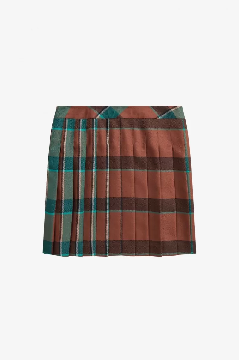 Reminiscent of school days, sports skirts, and the unforgettably bold, chunky patterns of ‘70s knitwear, our pleated tartan skirt pumps up the nostalgia. All-over pleats allow for extra movement on the dance floor.