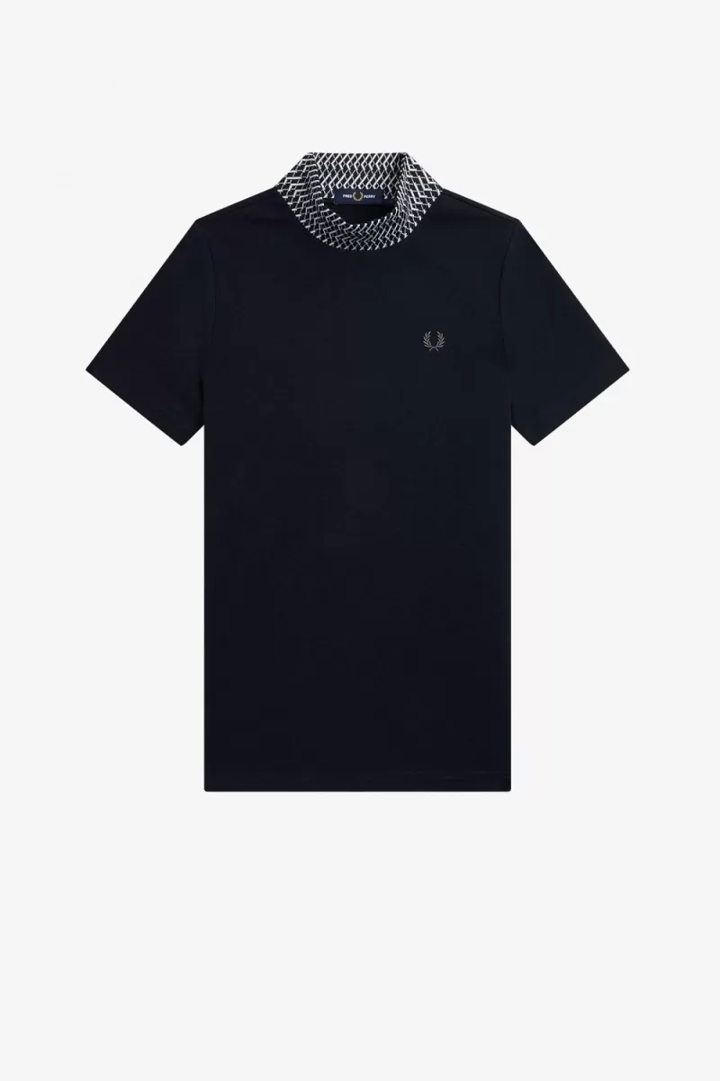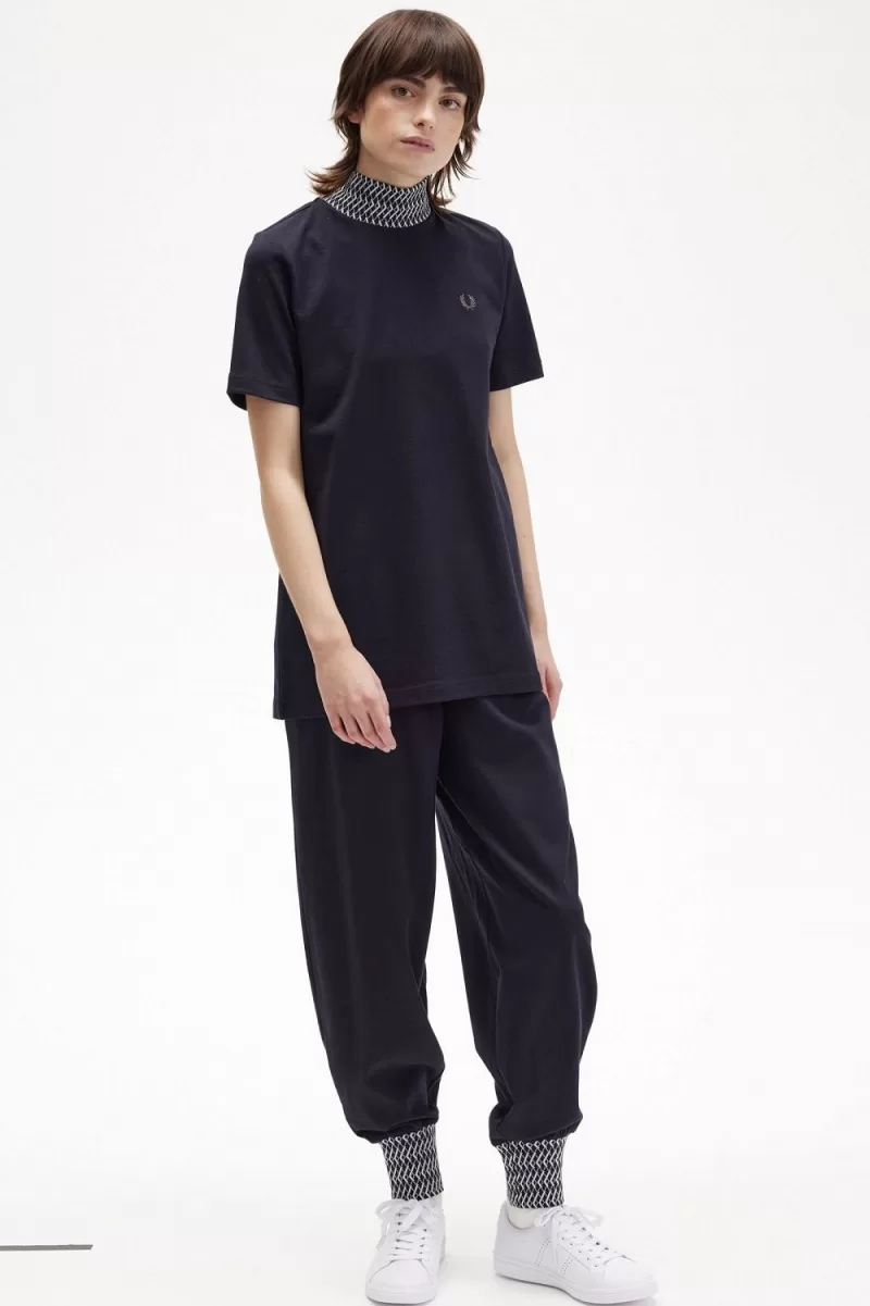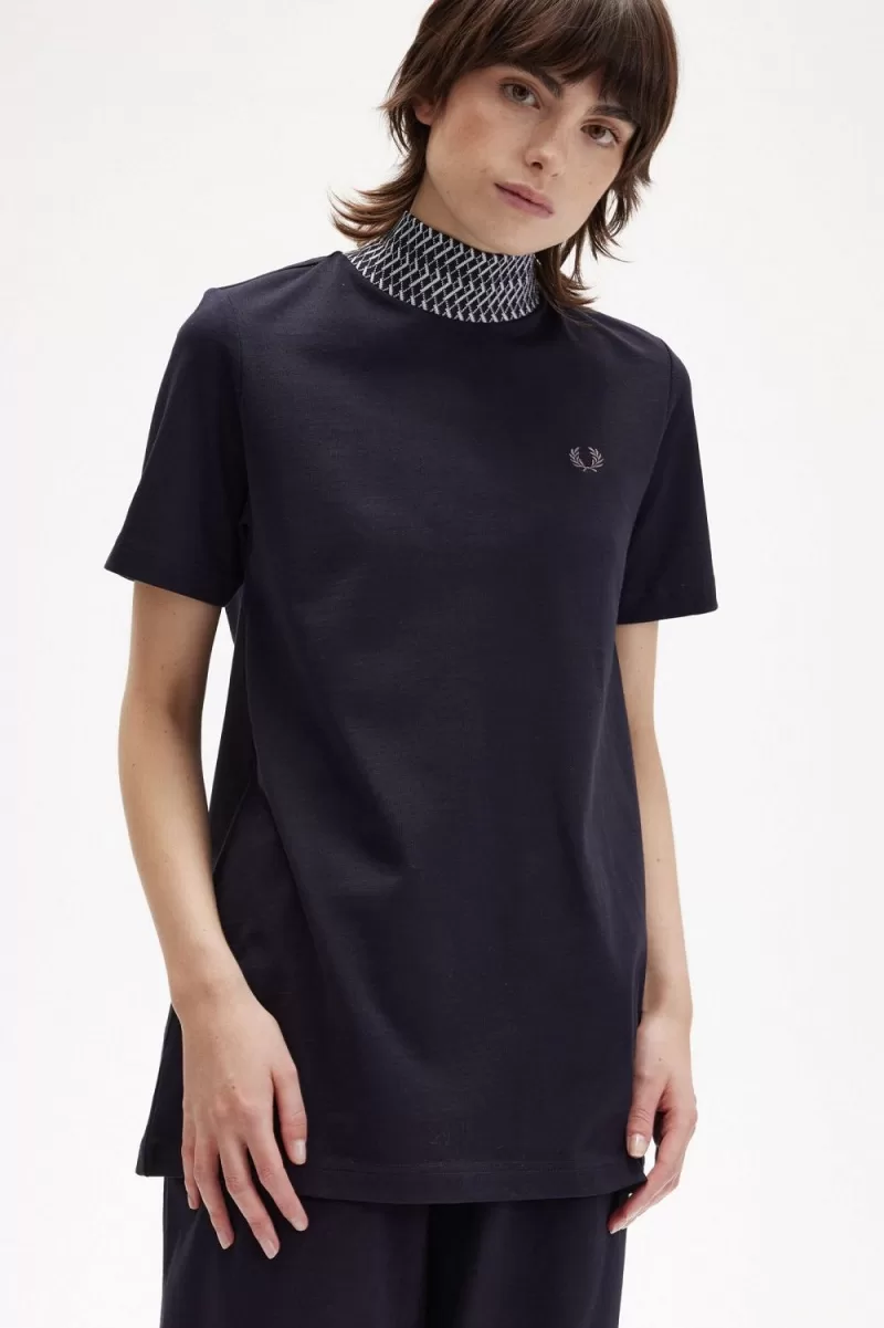 Fred Perry Jacquard Trim High Neck Women’s T-Shirt Navy | KVHMD6523