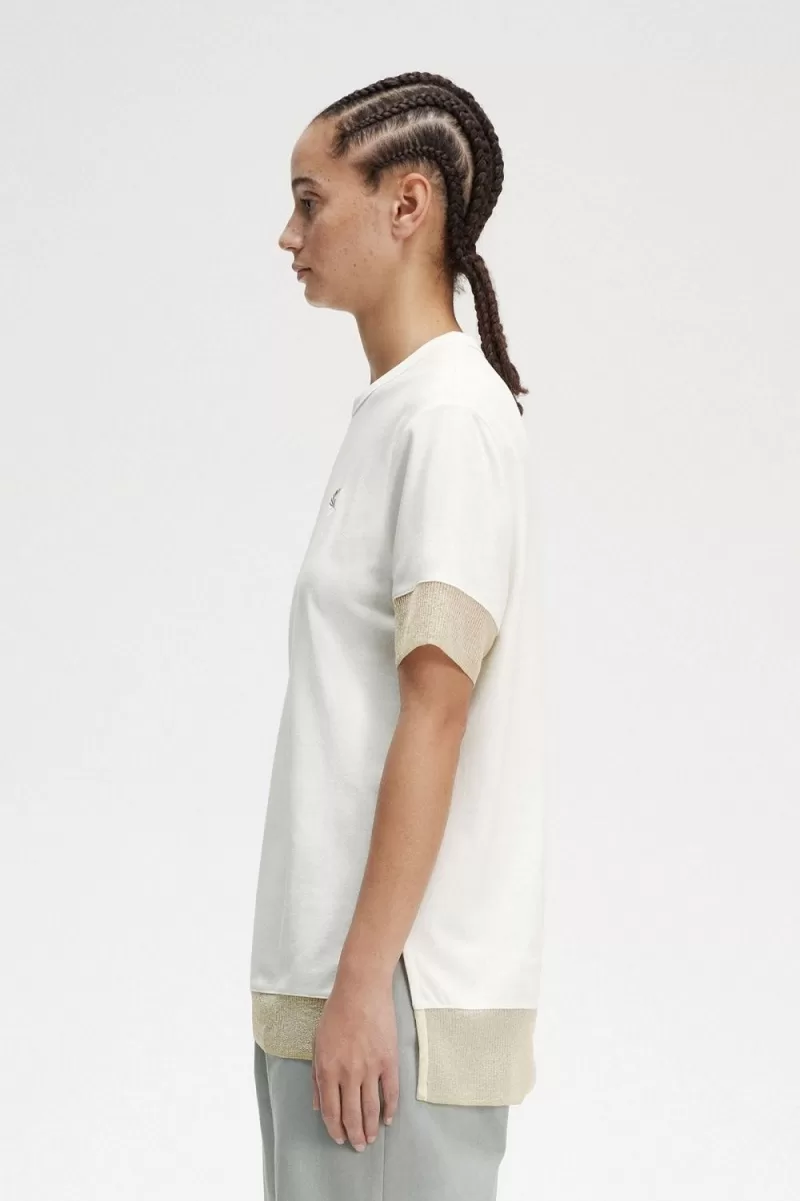 Fred Perry Sheer Trim Piqué Women’s T-Shirt Snow White | IXGZW5960
